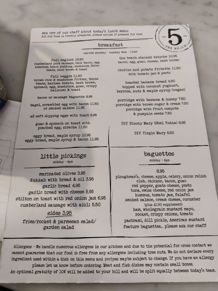 Welcome to Five The Beach, a charming café nestled by the scenic Clevedon coastline. This vibrant spot offers a delightful menu brimming with culinary treasures. Start your journey with Marinated Olives or indulge in Garlic Bread topped with cheese. For heartier choices, the Black Linguine Crab and the Braised Short Ribs garner rave reviews, showcasing creativity and finesse. Don't miss the vegetarian delights like Leek Fritters paired with herb yogurt.